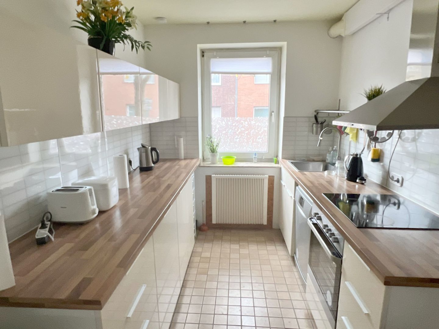 Die im Jahr 2009 komplett sanierte Wohnung verfügt über eine geräumige Eingangsdiele mit Einbauschrank, einer Küche mit gut erhaltener Einbauküche, ein großes Wohn- und Esszimmer