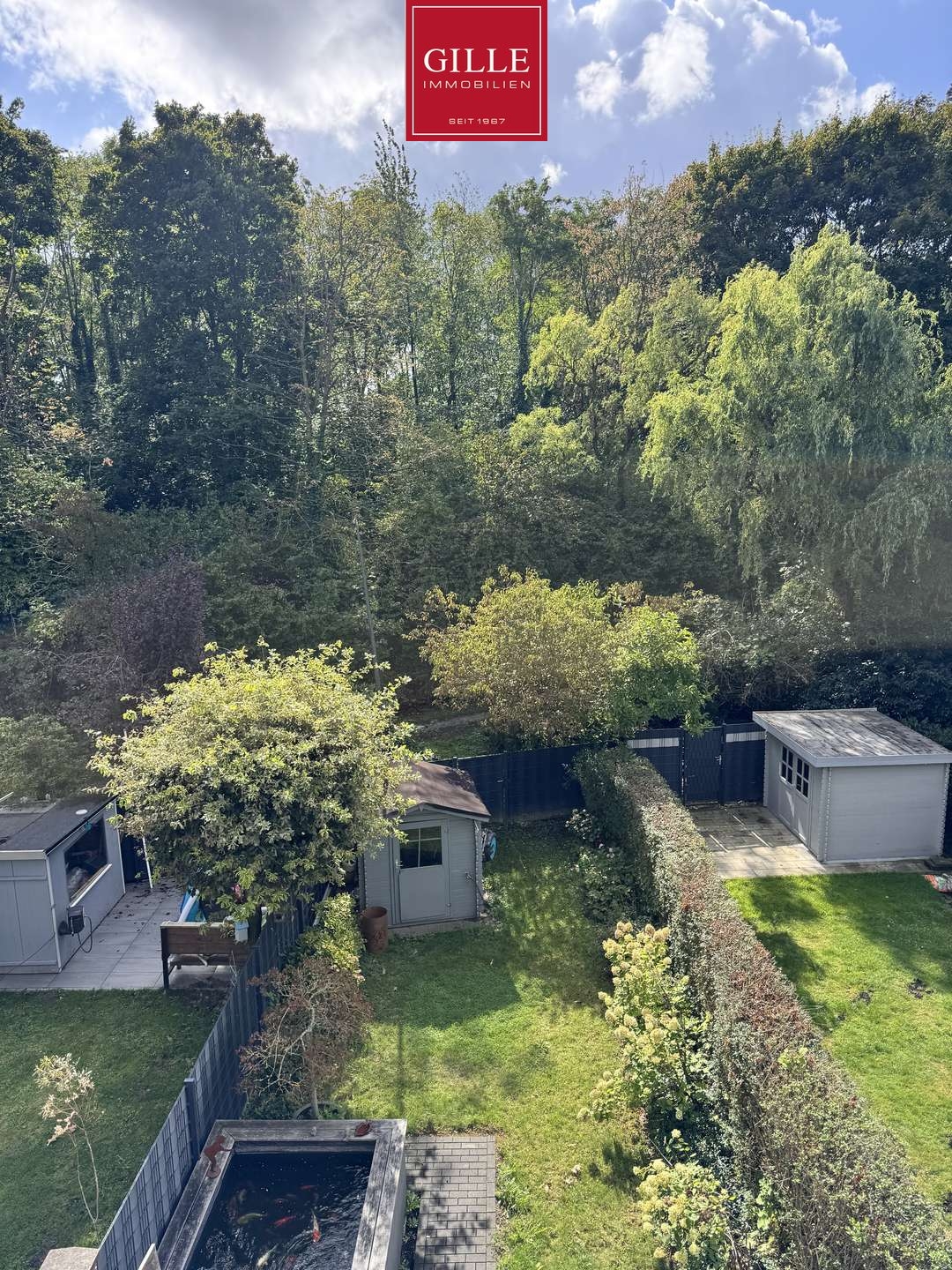 Das Grundstück von 231 m² umfasst einen schönen Garten, der zum Entspannen und Verweilen einlädt, das Hausgrundstück, das Garagengrundstück und die anteiligen Zuwege. Auf der großen Sonnenterrasse mit Blick ins Grüne können Sie Ihre Freizeit im Freien genießen oder mit Freunden und Familie grillen.