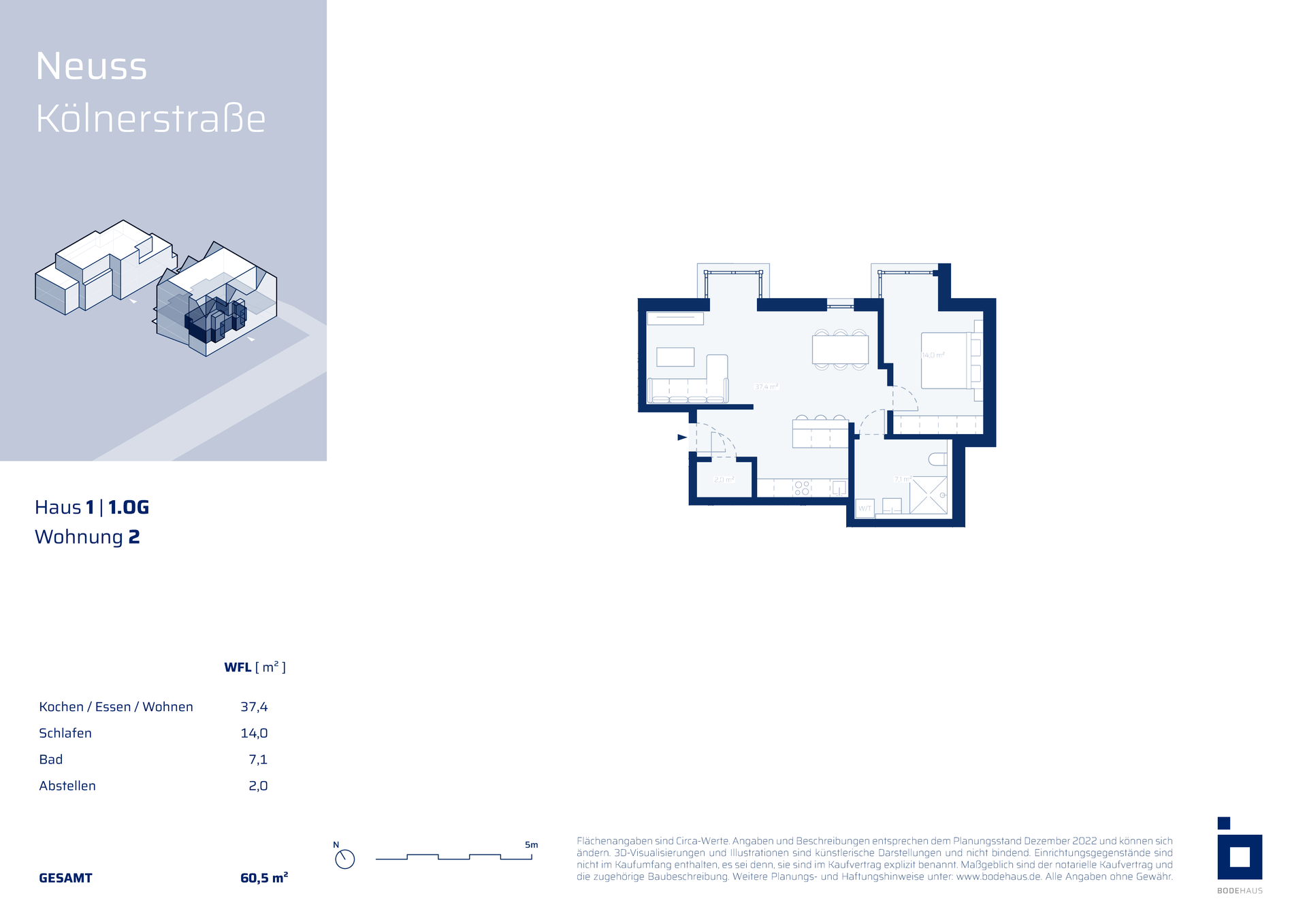 Die 2-Zimmer-Wohnung im Neubauprojekt "Kölner Straße 246 und 246a" befindet sich in Haus 1. Sie verfügt über eine Wohnfläche von ca. 60,5 m² und überzeugt durch ein helles, modernes Wohnkonzept. Ein besonderes architektonisches Highlight sind die beiden Erker im Wohnzimmer und im Schlafzimmer, die nicht nur für eine außergewöhnliche Lichtdurchflutung sorgen, sondern den Räumen auch eine besondere Großzügigkeit verleihen.
