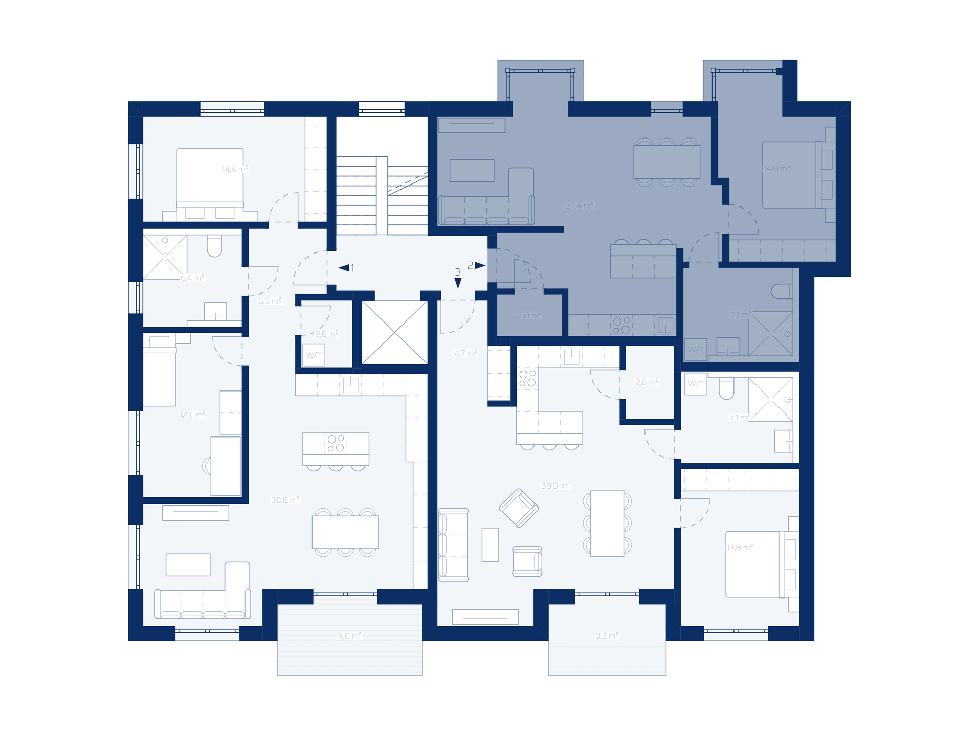 Die Wohnung ist barrierefrei konzipiert: Die Wohnung ist bequem mit dem Aufzug erreichbar barrierefreie Zugänge garantieren Komfort in jeder Lebenssituation.
