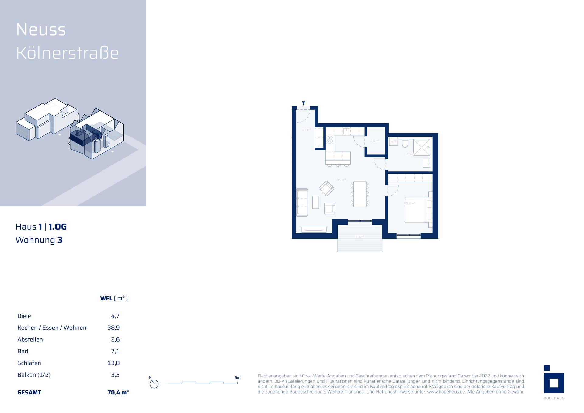 Die 2-Zimmer-Wohnung im Neubauprojekt "Kölner Straße 246 und 246a" befindet sich im 1.OG von Haus 1 und überzeugt mit einer durchdachten Wohnfläche von ca. 70,4 m² und einem klar strukturierten Grundriss. Das Herzstück bildet der großzügige Wohn- und Essbereich mit offener Küche, der den Mittelpunkt der Wohnung darstellt und vielfältige Gestaltungsmöglichkeiten eröffnet – vom gemütlichen Rückzugsort bis hin zum offenen Raum für gesellige Abende.