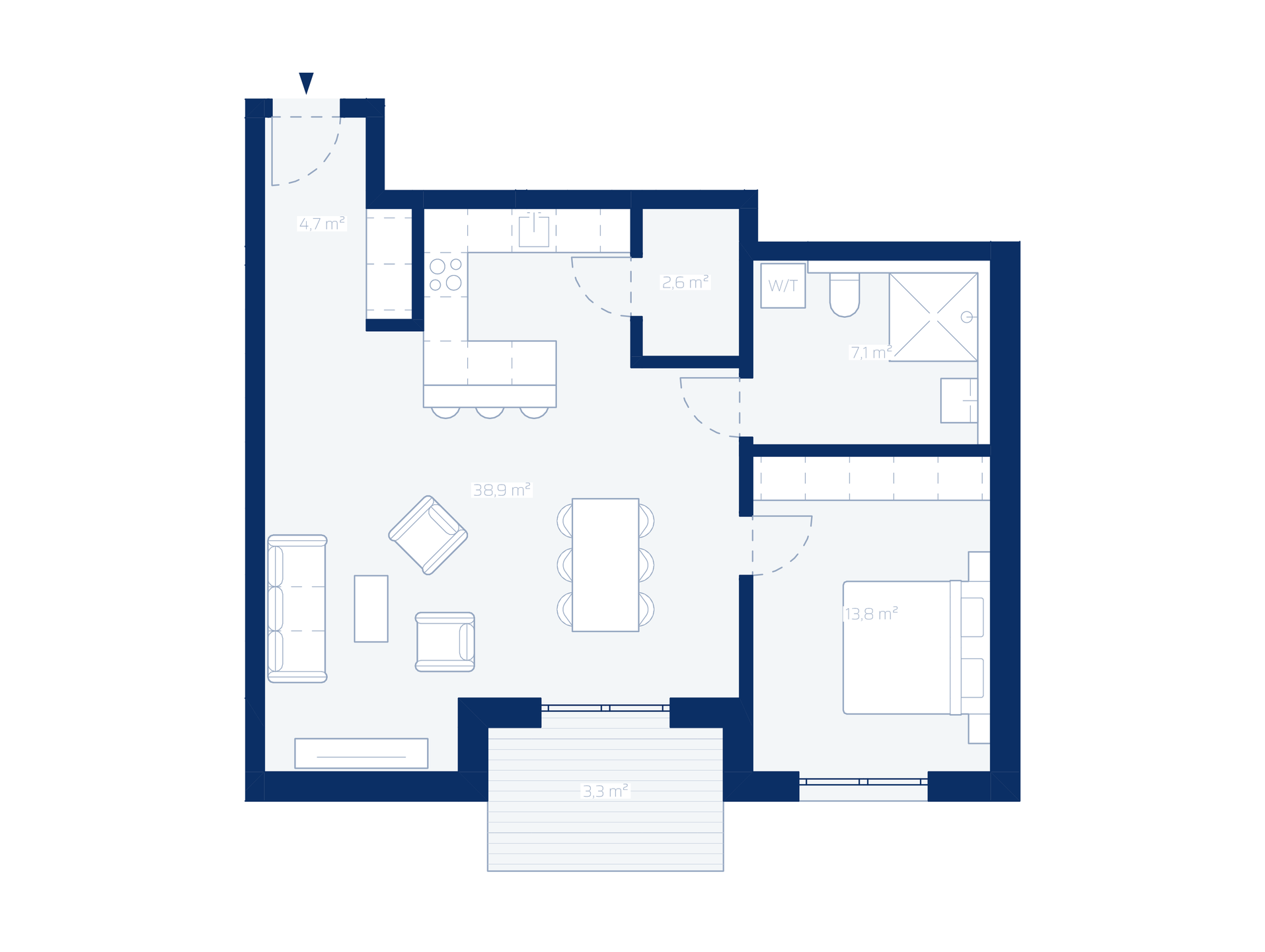 Bitte beachten Sie: Eine Einbauküche ist nicht Bestandteil des Angebotes.