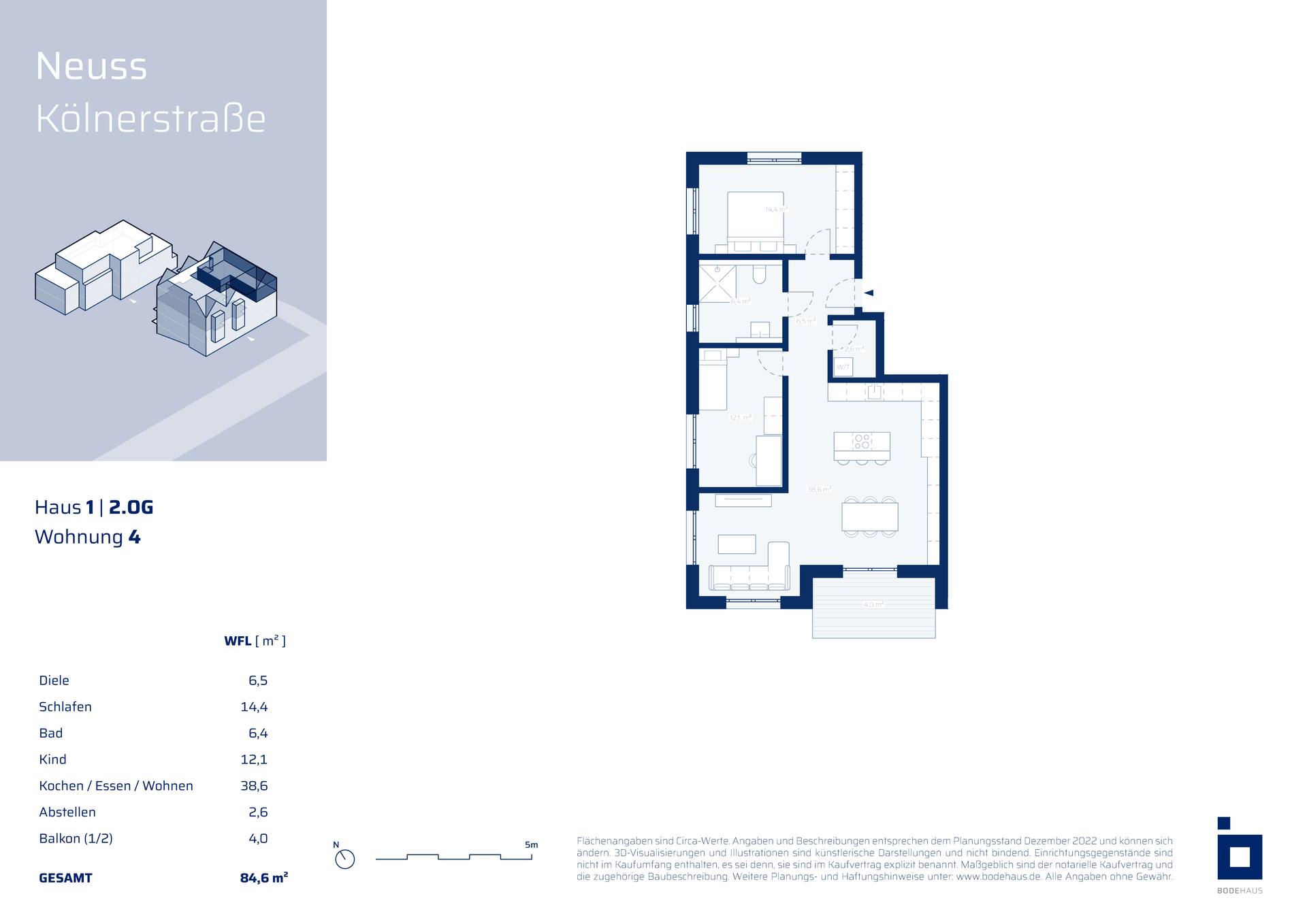 Die 3-Zimmer-Wohnung im Neubauprojekt an der Kölner Straße 246 in Neuss bietet mit einer Wohnfläche von ca. 84,6 m² ein durchdachtes Raumkonzept, das modernes Wohnen und hohen Komfort vereint. Das besondere Highlight ist der großzügige Wohn- und Essbereich mit offener Küche, der auf rund 38,6 m² ein lichtdurchflutetes Herzstück der Wohnung bildet. Hier entstehen großzügige Freiräume für gemeinsame Mahlzeiten, gesellige Abende oder entspannte Stunden.