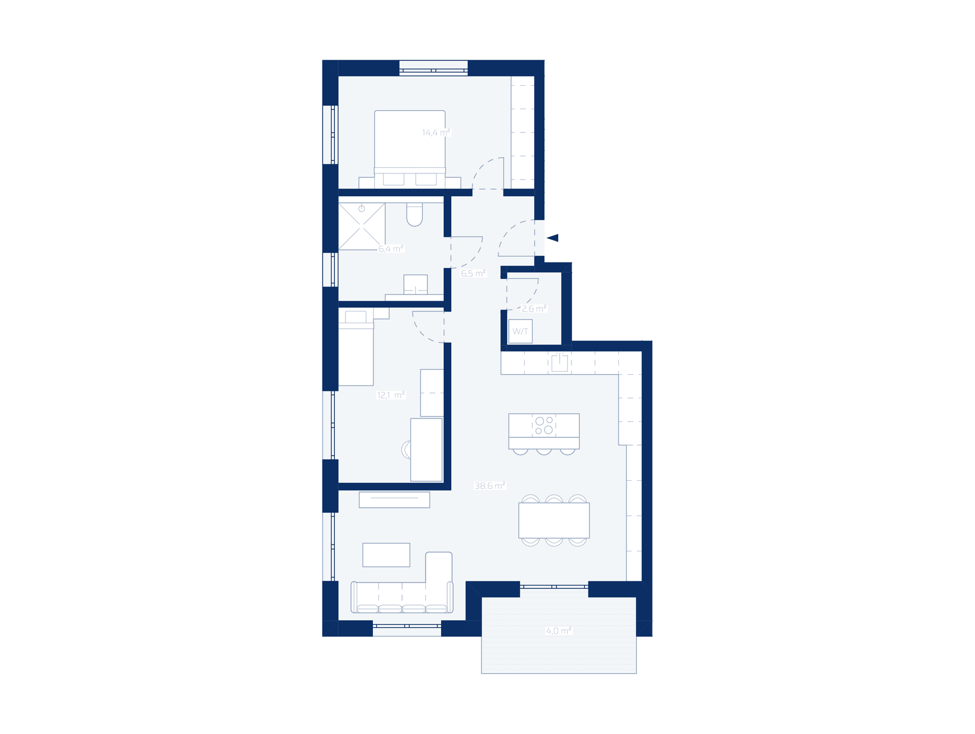 • Moderner Grundriss mit großzügigem Wohn-Essbereich und offener Küche