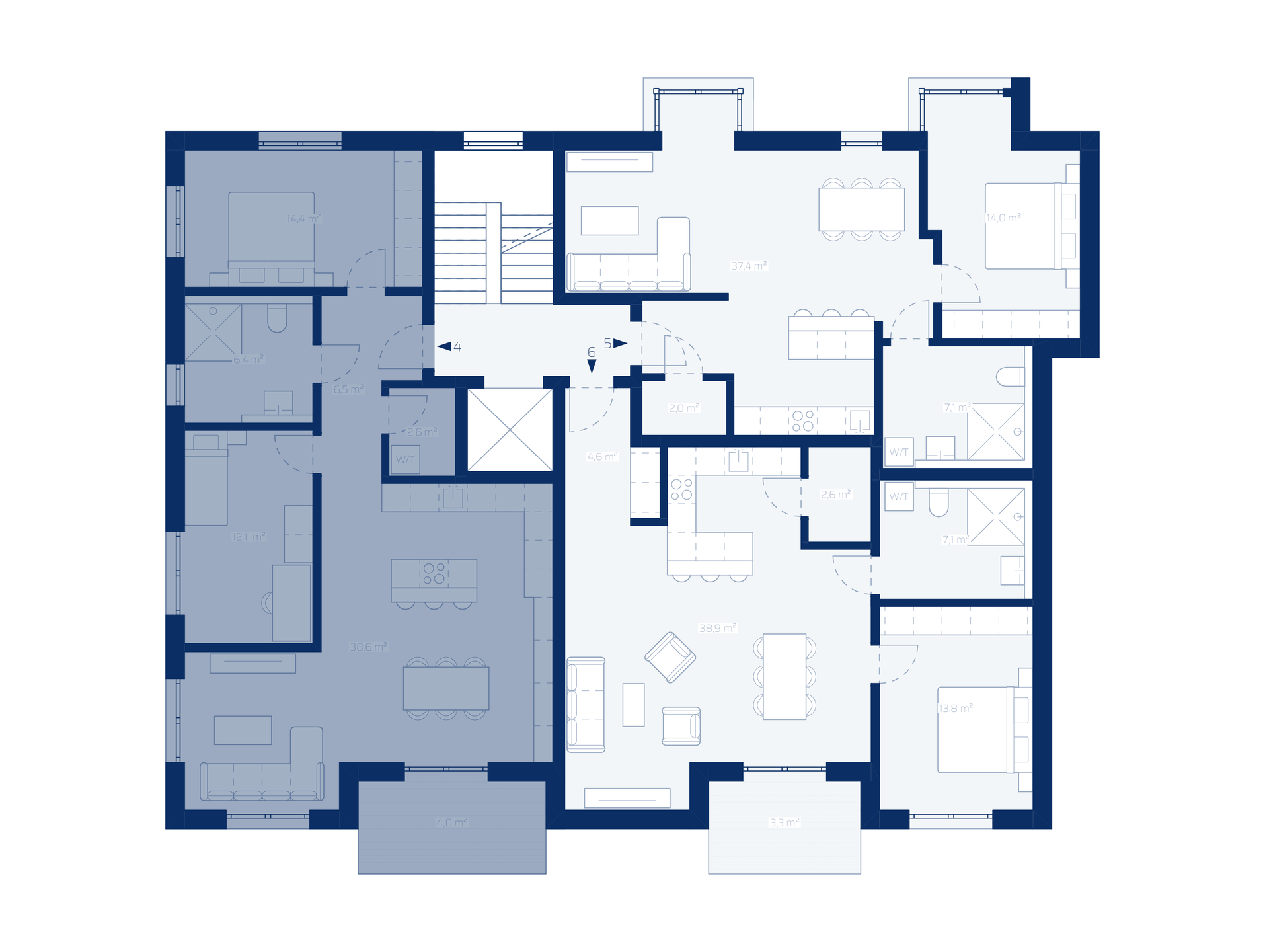 Die Wohnung ist barrierefrei konzipiert: Die Wohnung ist bequem per Aufzug erreichbar, barrierefreie Übergänge sorgen für Komfort in jeder Lebenslage.