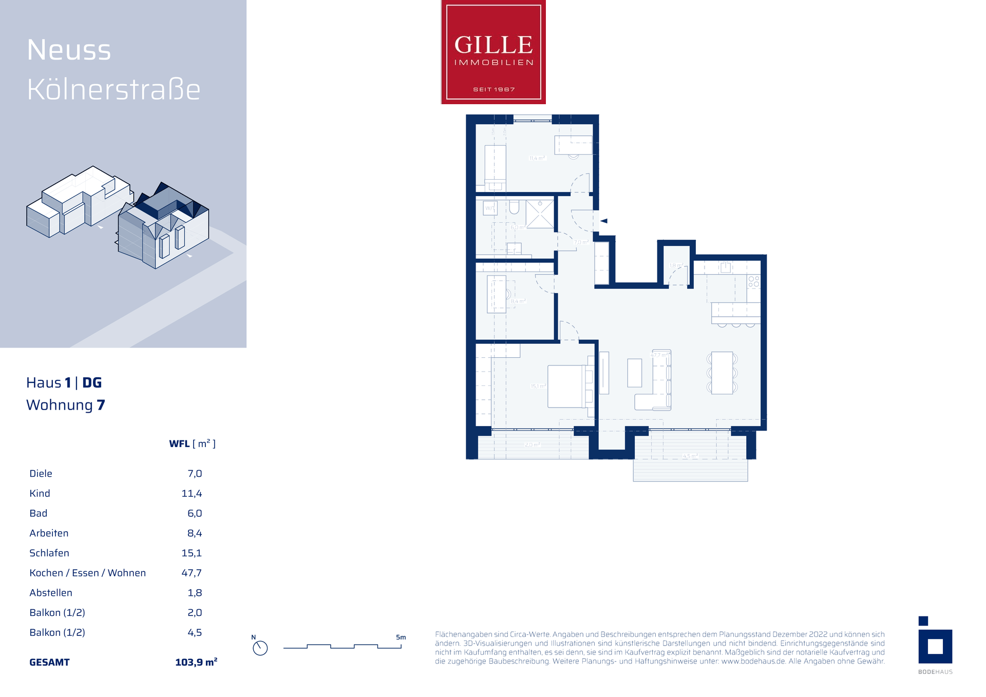 Die 4-Zimmer-Dachgeschosswohnung im Neubauprojekt an der Kölner Straße 246 in Neuss beeindruckt mit einer großzügigen Wohnfläche von ca. 103,9 m² und einem klaren, modernen Grundriss. Ein besonderes Highlight ist die außergewöhnliche Deckenhöhe von ca. 2,80 m, die den Räumen ein luftiges, repräsentatives Ambiente verleiht.