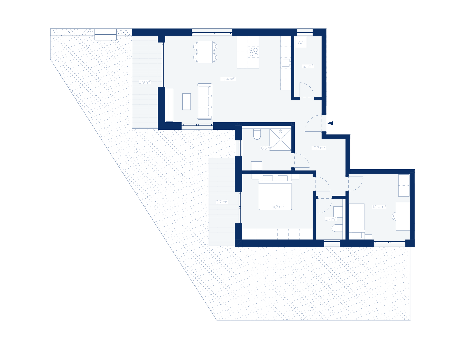 Bitte beachten Sie: Eine Einbauküche ist nicht Bestandteil des Angebotes.