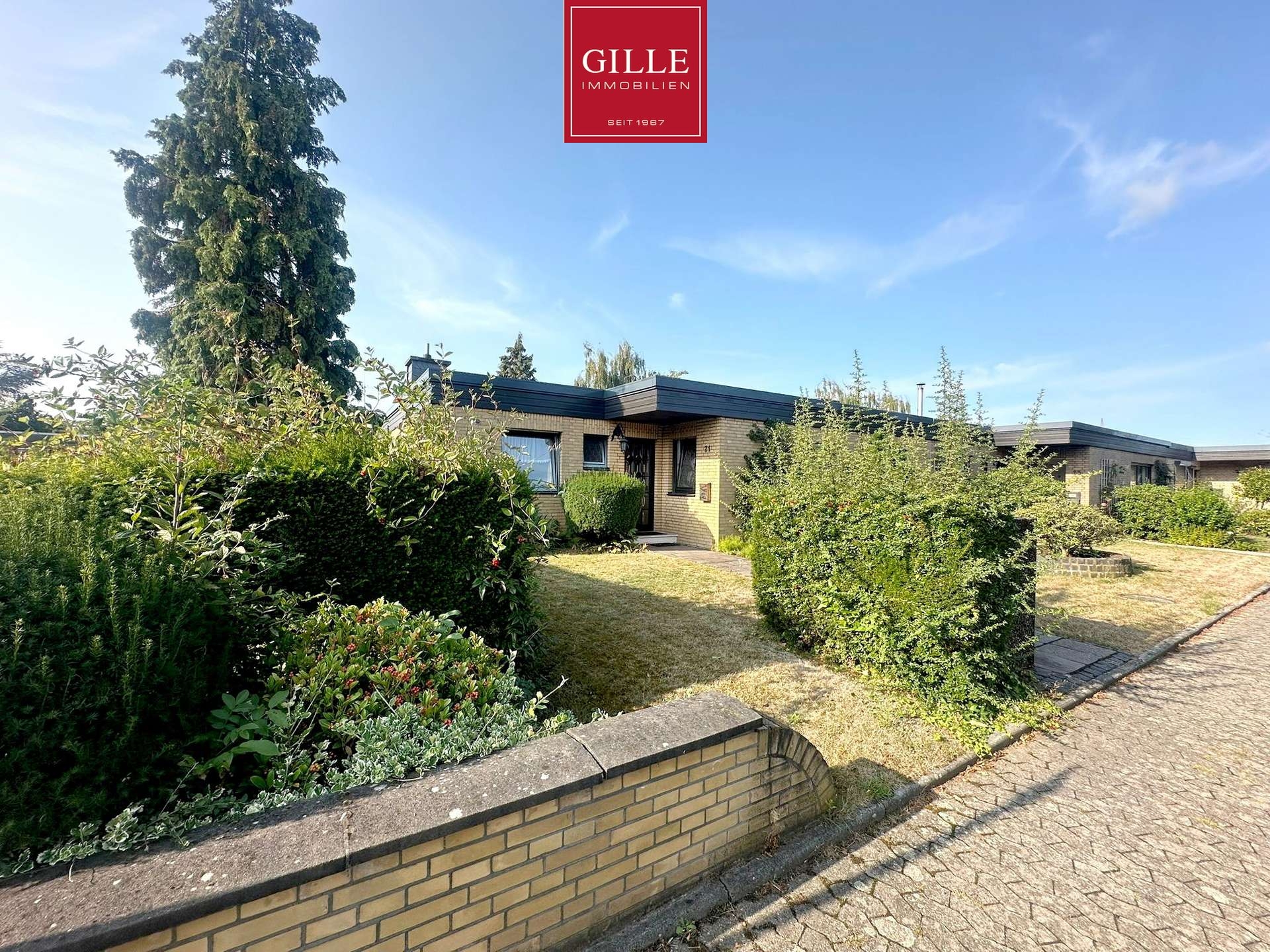 Sie erreichen den Bungalow über einen verkehrsberuhigten Stichweg, der nur ausnahmsweise befahren werden soll. Die zugehörige Garage befindet sich auf einem in ca. 50 m entfernen Garagenhof.