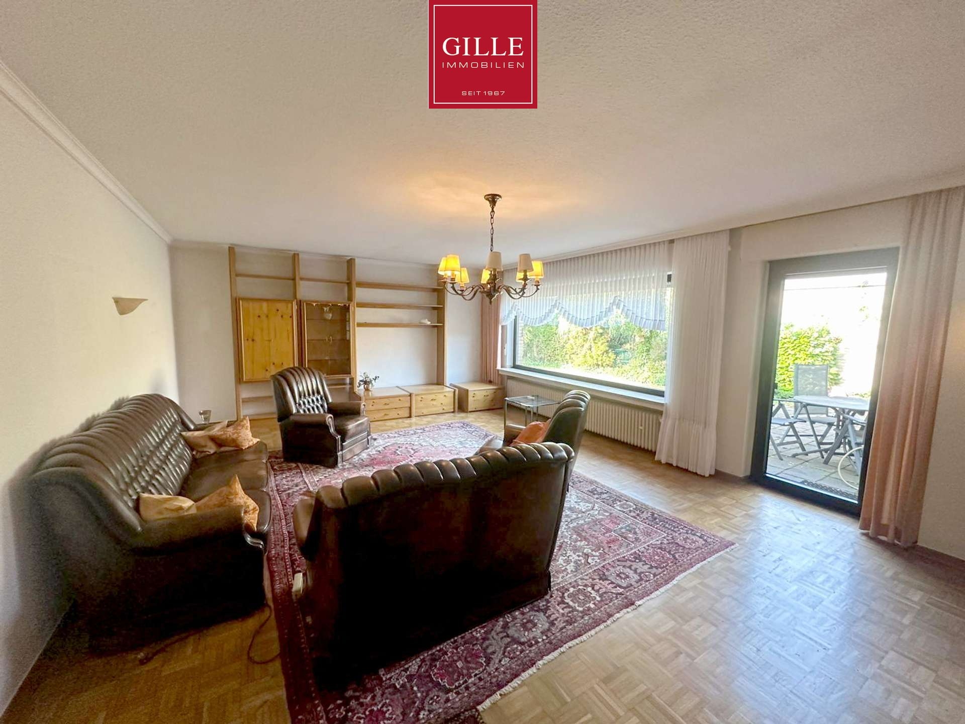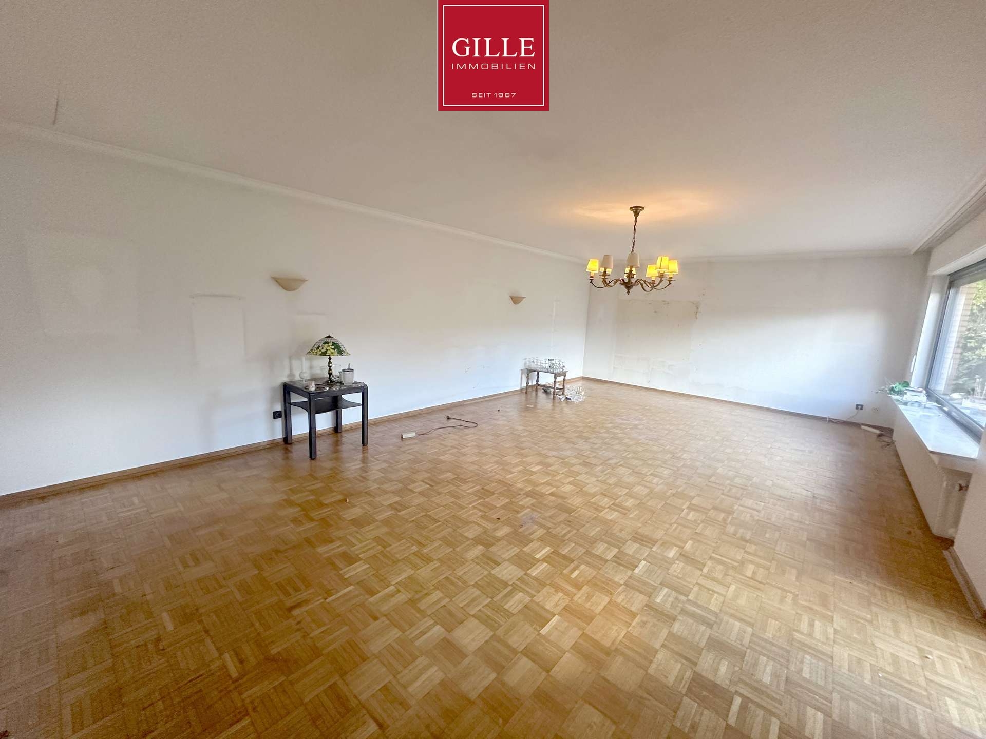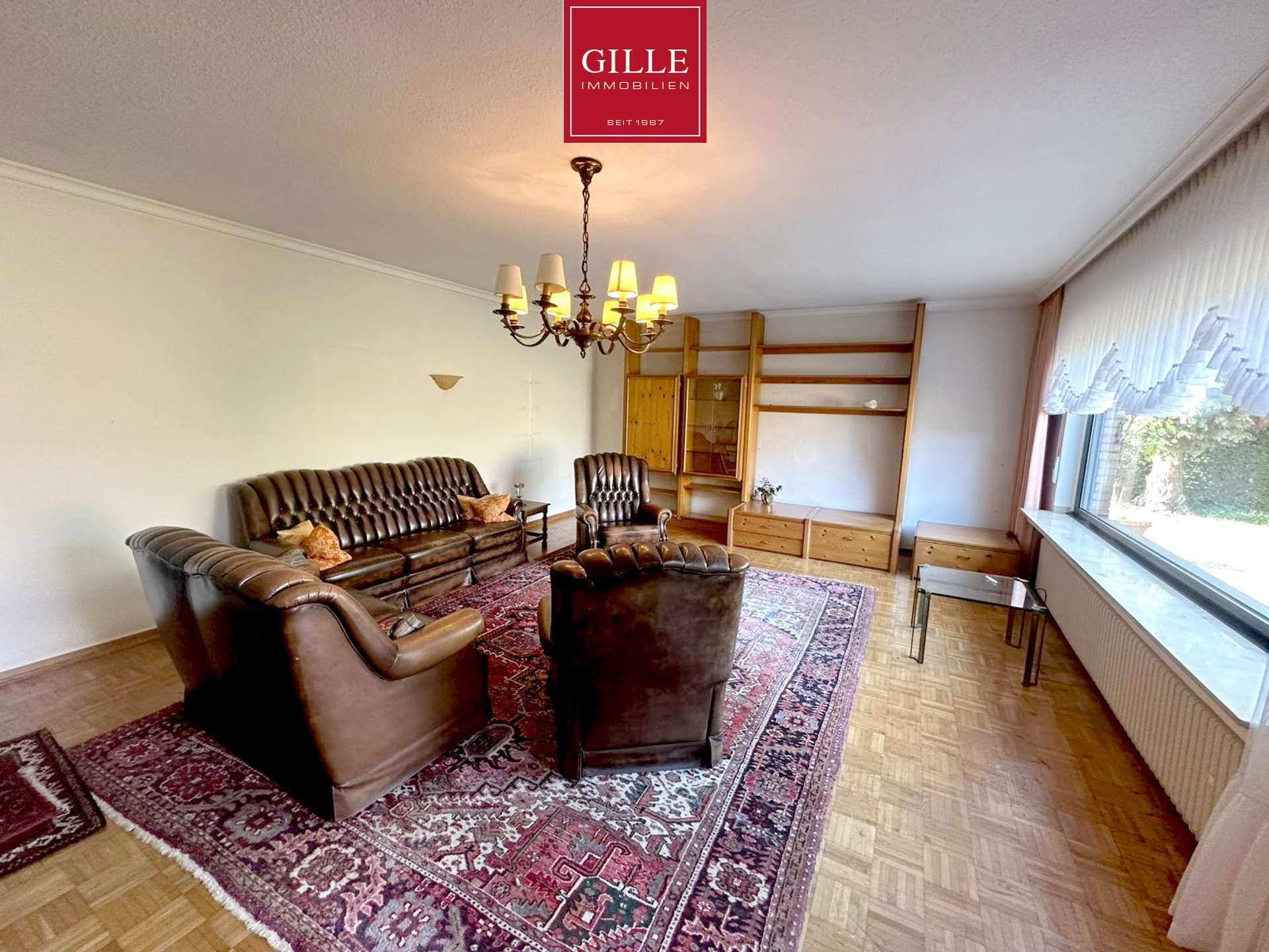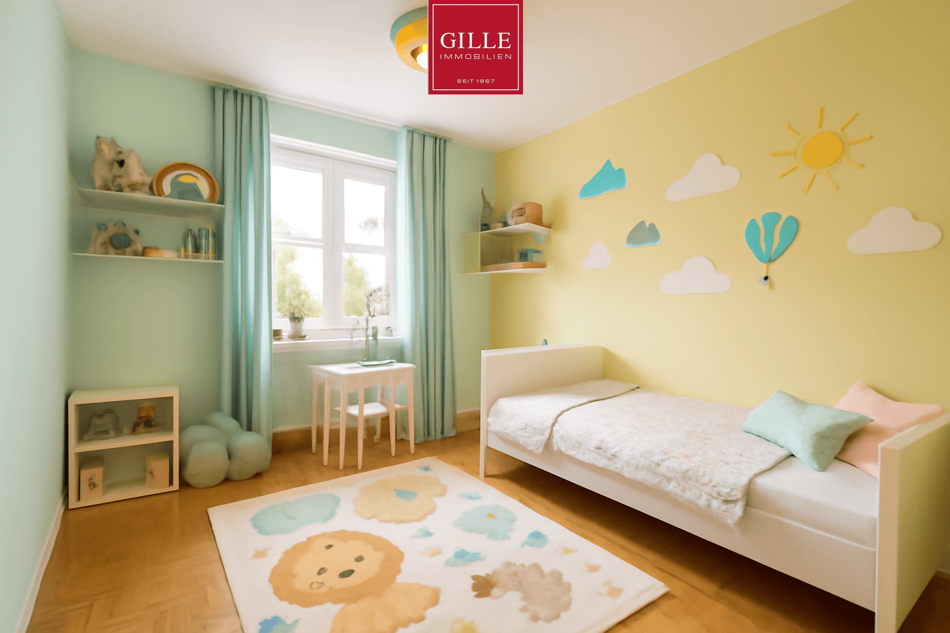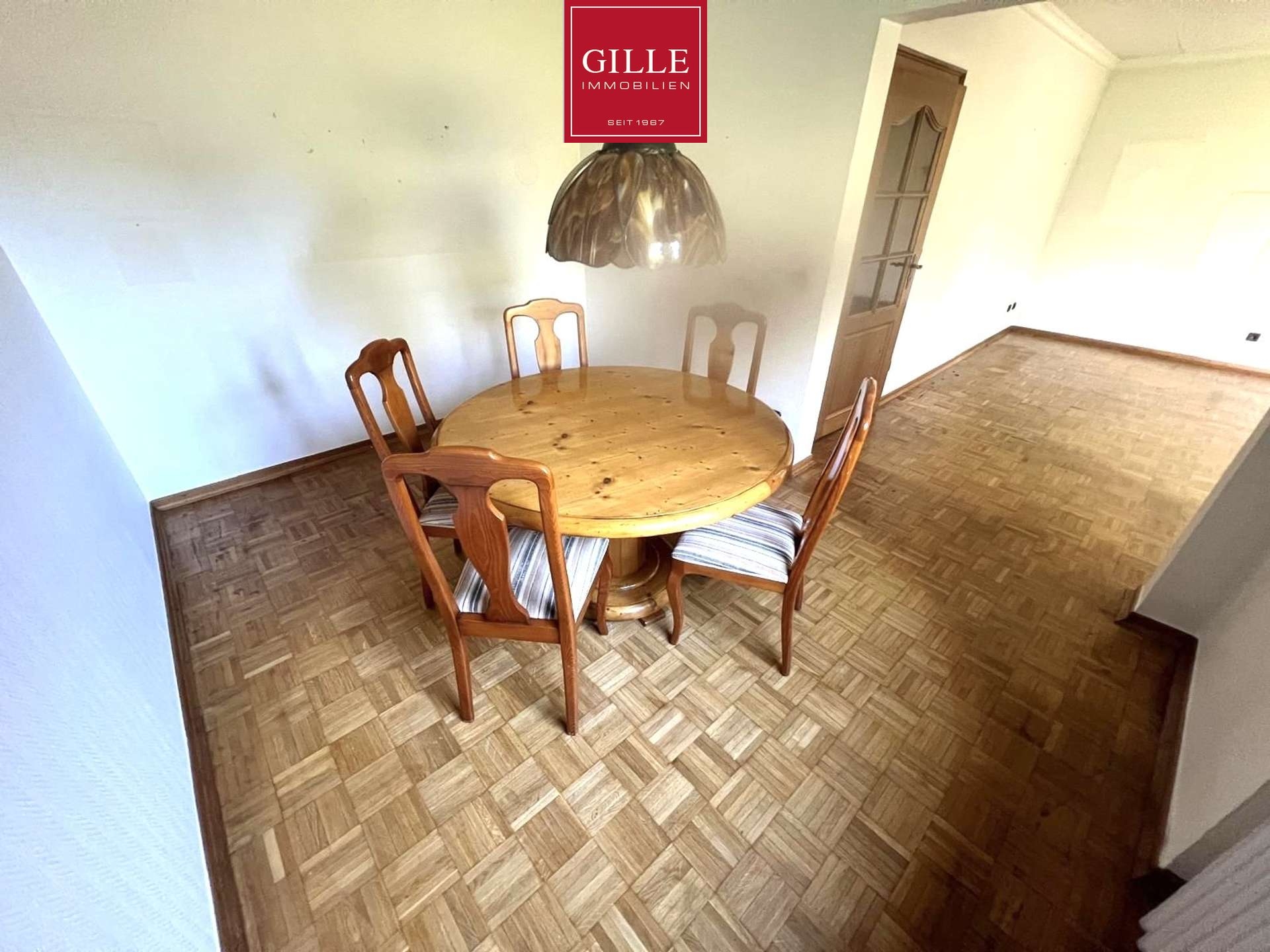 Das großzügige und lichtdurchflutete Wohnzimmer ist mit einem Parkettboden und einer großen Fensterfront mit schönem Blick in den eigenen Garten ausgestattet. Der offen gestaltete Essbereich kann durch den Einbau einer Wand wieder in den ursprünglichen Zustand gebracht werden. Somit kann hier ein weiteres Kinder- oder Arbeitszimmer geschaffen werden.