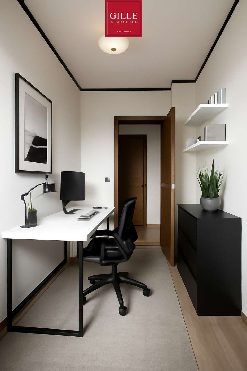 Von der Eingangsdiele erreichen Sie hereinkommend rechts eine weitere Diele. Von dieser Diele aus erreichen Sie das großzügige Hauptbadezimmer, ein Arbeitszimmer, ein Kinderzimmer und ein Elternschlafzimmer.