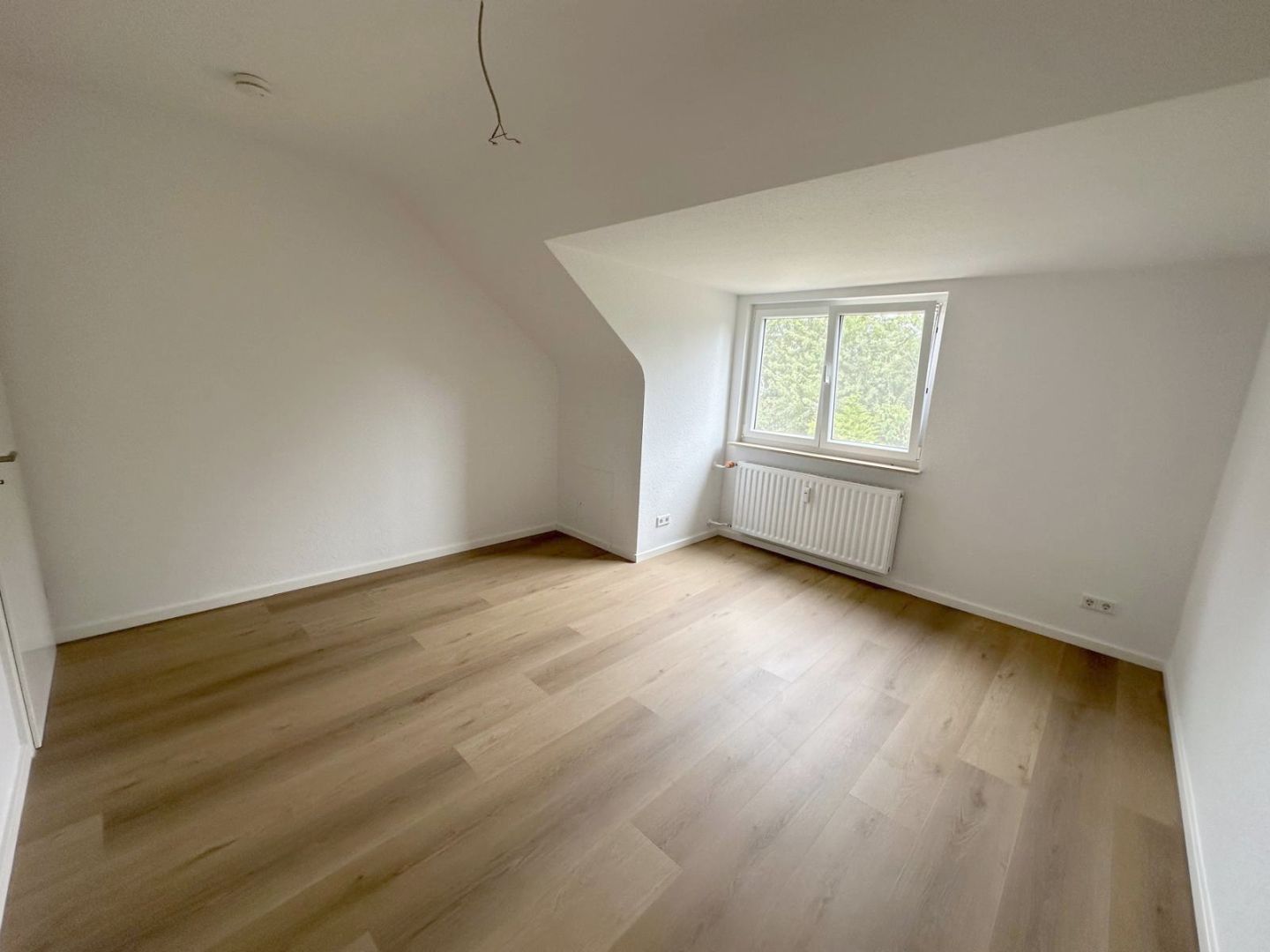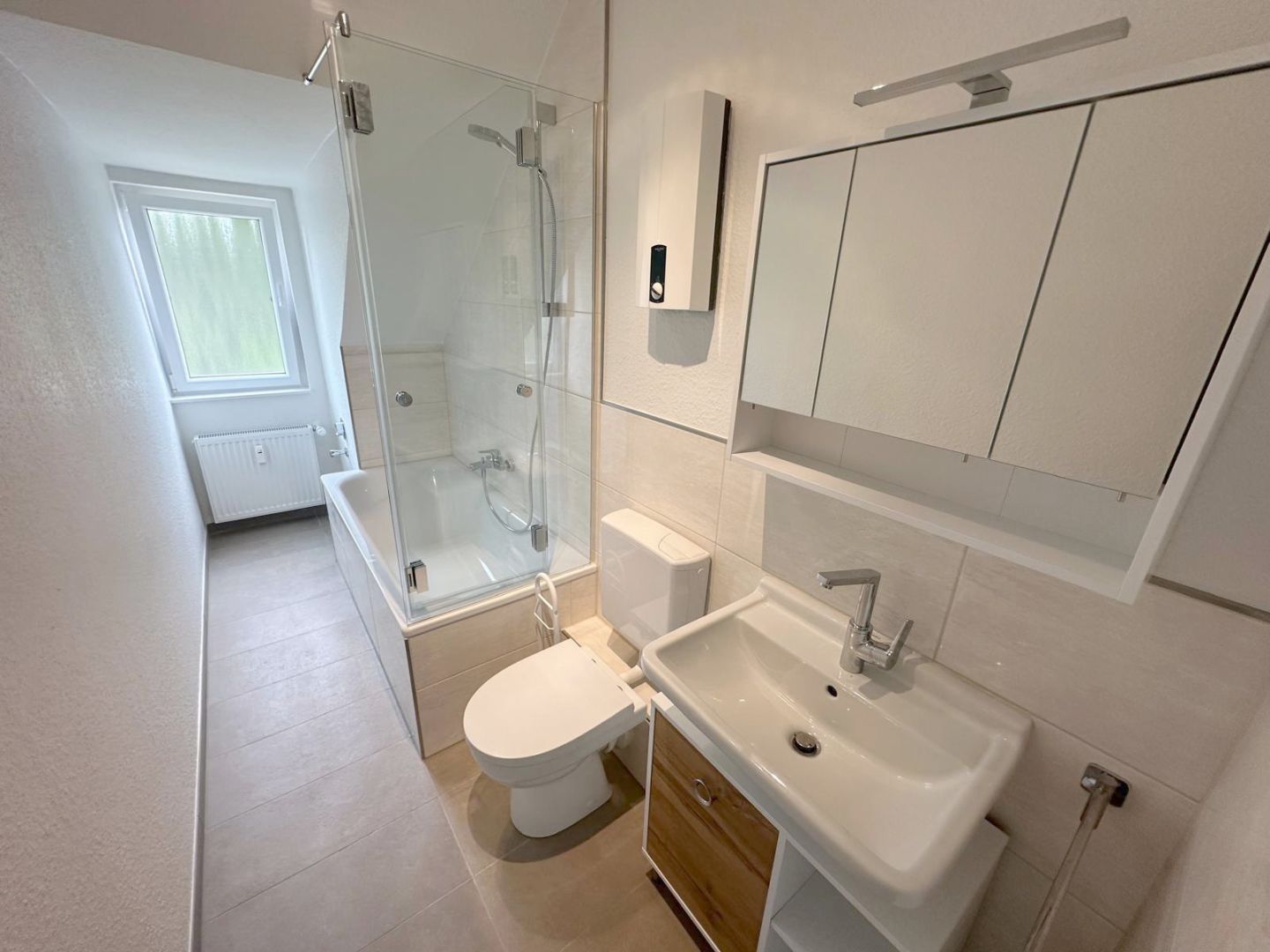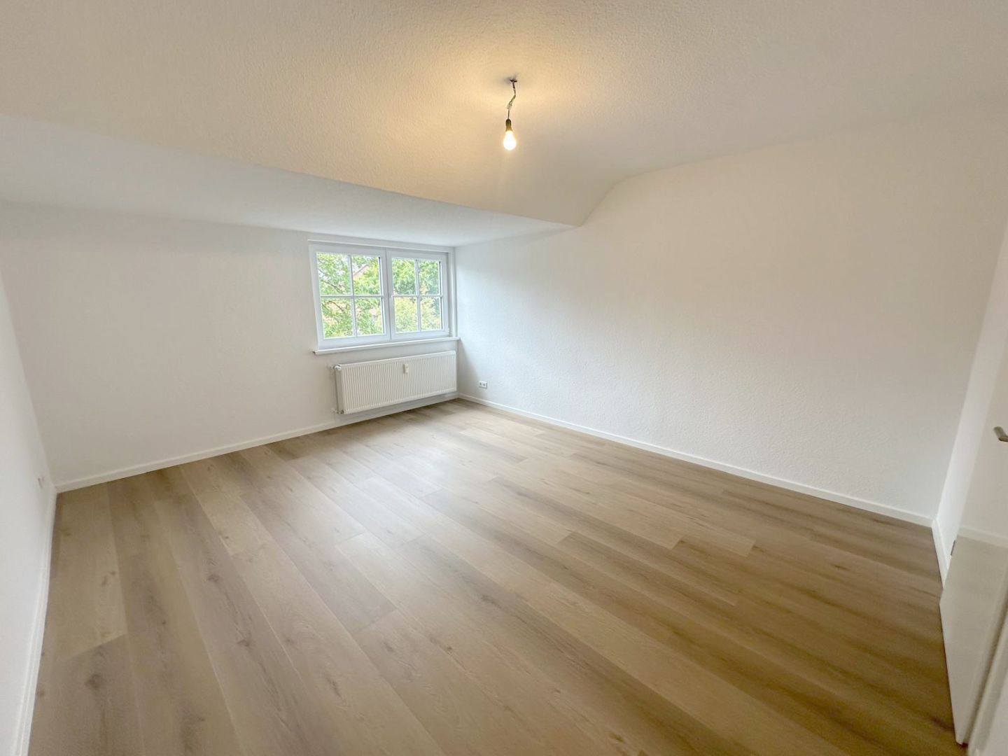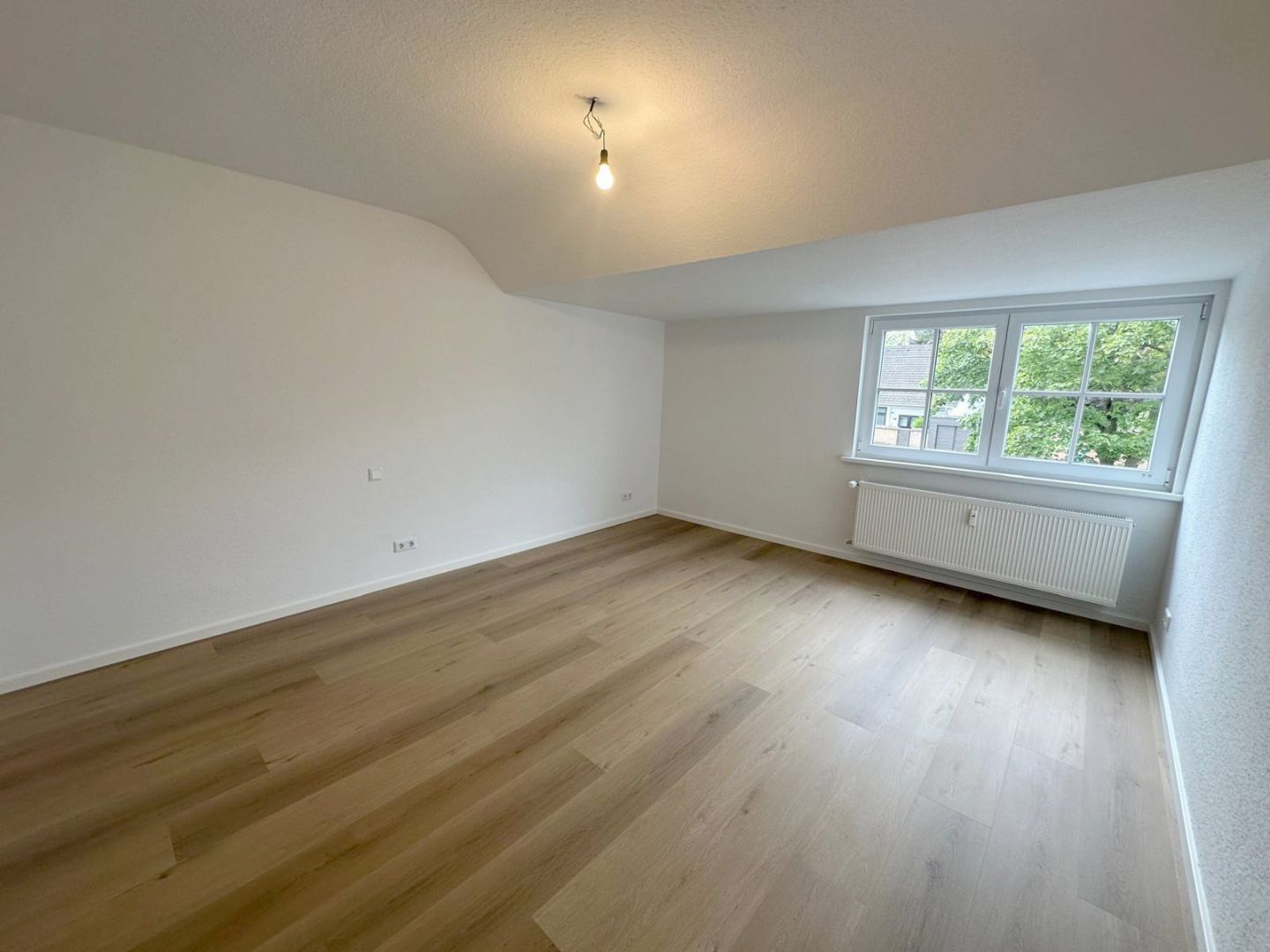 BeschreibungDie helle und repräsentative 3-Zimmer-Dachgeschosswohnung befindet sich in der 1. Etage eines 3-Parteienhauses im Neusser Lukasviertel und wurde vollständig in diesem Jahr saniert. Die hochwertig ausgestattete Wohnung verfügt über eine großzügige Eingangsdiele mit Garderobenbereich, einen großzügigen Wohnbereich mit angrenzendem und offenen Essbereich inklusive Einbauküche, einen Balkon, ein saniertes Tageslichtbadzimmer mit Badewanne, ein geräumiges Schlafzimmer sowie ein helles Arbeits- oder Gästezimmer. Der helle und lichtdurchflutete Wohnbereich bietet Ihnen den Zugang zu dem Balkon sowie dem offenen Essbereich mit angrenzender Küche inklusive Einbauküche und Deckenleuchte. Die auf den Fotos abgebildete Einbauküche ist im Mietpreis enthalten und mit einem Backofen, einem Ceranfeld, einer Dunstabzugshaube, einer Spüle, einer kleinen Spülmaschine sowie einer Kühl- und Gefrierkombination ausgestattet. Das Tageslichtbadezimmer wurde im Zuge der Sanierung vollständig erneuert und verfügt über eine Badewanne inkl. einer maßgefertigten Duschabtrennung aus Glas, ein WC, ein Waschbecken inkl. Unterschrank, einen Spiegelschrank inkl. Beleuchtung, eine Deckenleuchte, ein Fenster und einen Durchlauferhitzer. Alle Sanitärgegenstände sind in weiß gehalten und bilden mit den großformatigen hellbeigen Wandfliesen sowie die den großformatigen beigen Bodenfliesen ein stimmiges Bild. Das geräumige Schlafzimmer bietet Ihnen Platz für ein Doppelbett und einen großen Kleiderschrank. Das helle Arbeits- oder Gästezimmer ist mit 2 Sprossenfenstern versehen. Zu der Wohnung gehört ein eigener und großer Kellerraum, wo auch Ihre Fahrräder Platz finden sowie eine Waschküche im Keller. Die Beheizung der Wohnung erfolgt über eine Öl-Zentralheizung. Die Warmwasserversorgung wird über einen Durchlauferhitzer generiert. Die Treppenhausreinigung, die Reinigung der Waschküche und der Winterdienst wird abwechselnd von den Mietern übernommen.