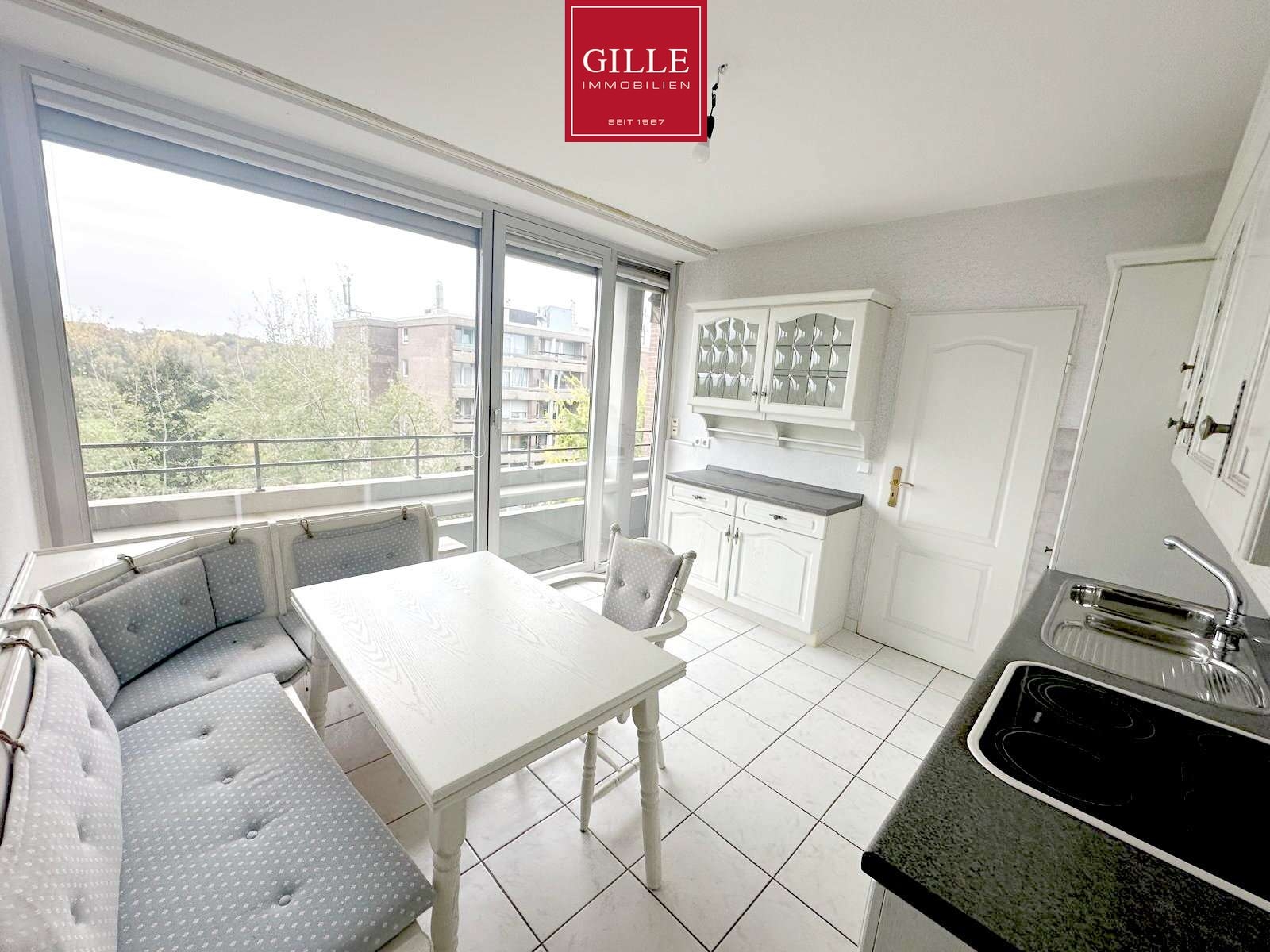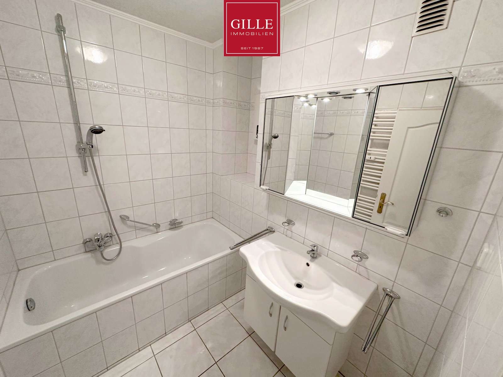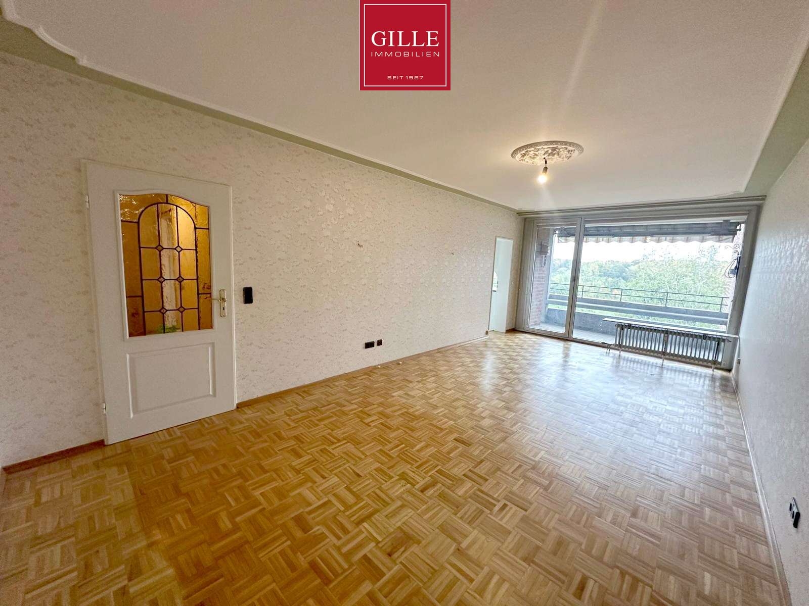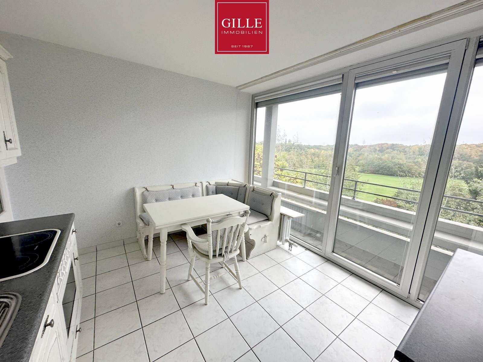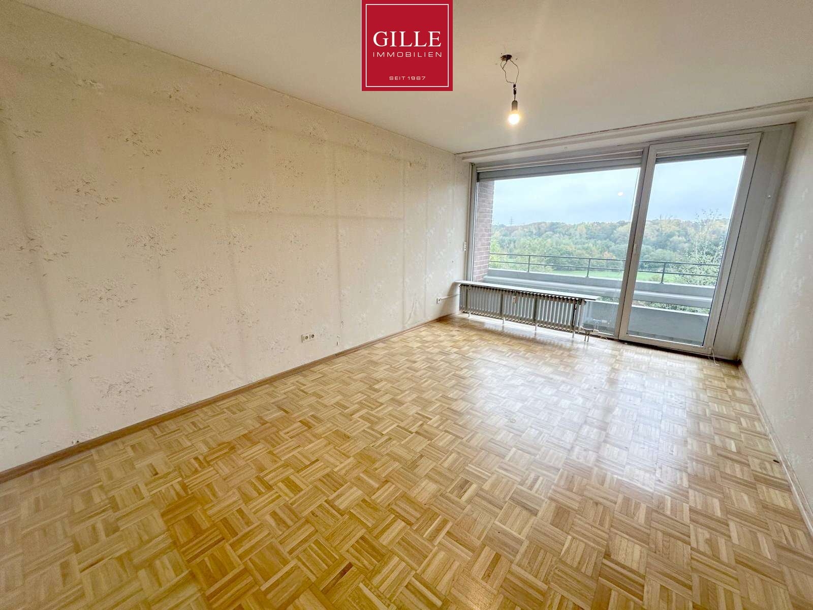BeschreibungDie zur Vermietung anstehende gepflegte und gut aufgeteilte 3-Zimmerwohnung mit Aufzug und großer Loggia wurde ursprünglich in 1973 errichtet und besticht durch die helle Wohnatmosphäre und den tollen Weitblick. Sie befindet sich im 6. Obergeschoss und ist sowohl vom Hauseingang als auch von der Tiefgarage über einen Personenaufzug zu erreichen. Von der geräumigen und L-förmig gestalteten Eingangsdiele aus erreichen Sie alle weiteren Räume der Wohnung. Gegenüberliegend erreichen Sie einen Abstellraum und das separate WC mit WC und Waschbecken. Alle Sanitärgegenstände sind in weiß gehalten und die hellgelben Wand- und Bodenfliesen werden gerade modernisiert. Hereinkommend rechts erreichen Sie das sehr geräumige und helle Wohn-Esszimmer. Die komplette Fensterfront erstreckt sich über die ganze Breite des Raumes und enthält einen Zugang zur Loggia mit schönem Weitblick ins Grüne. Das Wohn-Esszimmer ist mit einem Stäbchenparkettboden, Stuckelementen an der Decke und einem direkten Zugang zur Wohnküche ausgestattet. Die helle und großzügige Wohnküche ist mit einer Einbauküche, einem hellen Fliesenboden, einem bodentiefen Fensterelement inkl. Balkontüre, elektrischen Außenrollläden und einem weiteren Zugang zur Diele versehen. Die abgebildete Einbauküche ist nicht im Mietpreis enthalten, kann aber ohne eine Abstandszahlung gerne genutzt werden. Das geräumige Schlafzimmer ist ebenfalls mit einem Stäbchenparkettboden, einer bodentiefen Fensterfront inkl. Ausgangstüre und elektrischen Außenrollläden versehen und bietet Ihnen ausreichend Platz für ein Bett und einen Kleiderschrank. Das gegenüberliegende Wannenbad ist mit einer Badewanne, einem Waschbecken, einem Waschmaschinenanschluss und einem Handtuchheizkörper ausgestattet. Alle Sanitärgegenstände in weiß gehalten und bilden mit den weißen Wand- und Bodenfliesen inkl. Bordüre ein stimmiges und gepflegtes Bild. Das Kinder- oder Arbeitszimmer ist mit einem Stäbchenparkett und einem großen Fenster mit tollem Weitblick ausgestattet. Der Dielenbereich und alle Wohn-/Schlafräume verfügen über einen Stäbchenparkettboden. Hiervon ausgenommen ist die Wohnküche, diese ist mit einem hellen Fliesenboden versehen. Die Wohnung verfügt über elektrischen Außenrollläden, ausgenommen hiervon sind das Wohnzimmer sowie das Kinder- oder Arbeitszimmer. Zur Wohnung gehört ein eigener Kellerraum, ein allgemein genutzter Trockenraum sowie eine Waschküche mit Gemeinschaftswaschmaschinen und Trockner. Die Treppenhausreinigung, die Pflege der gesamten Außenanlage sowie der Winterdienst werden übernommen und sind in den Nebenkosten enthalten.
