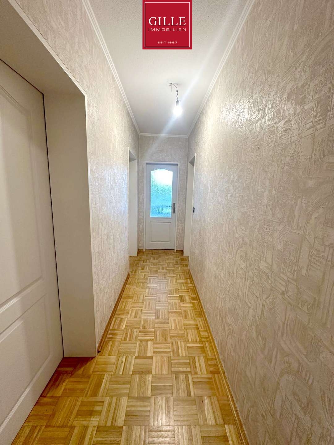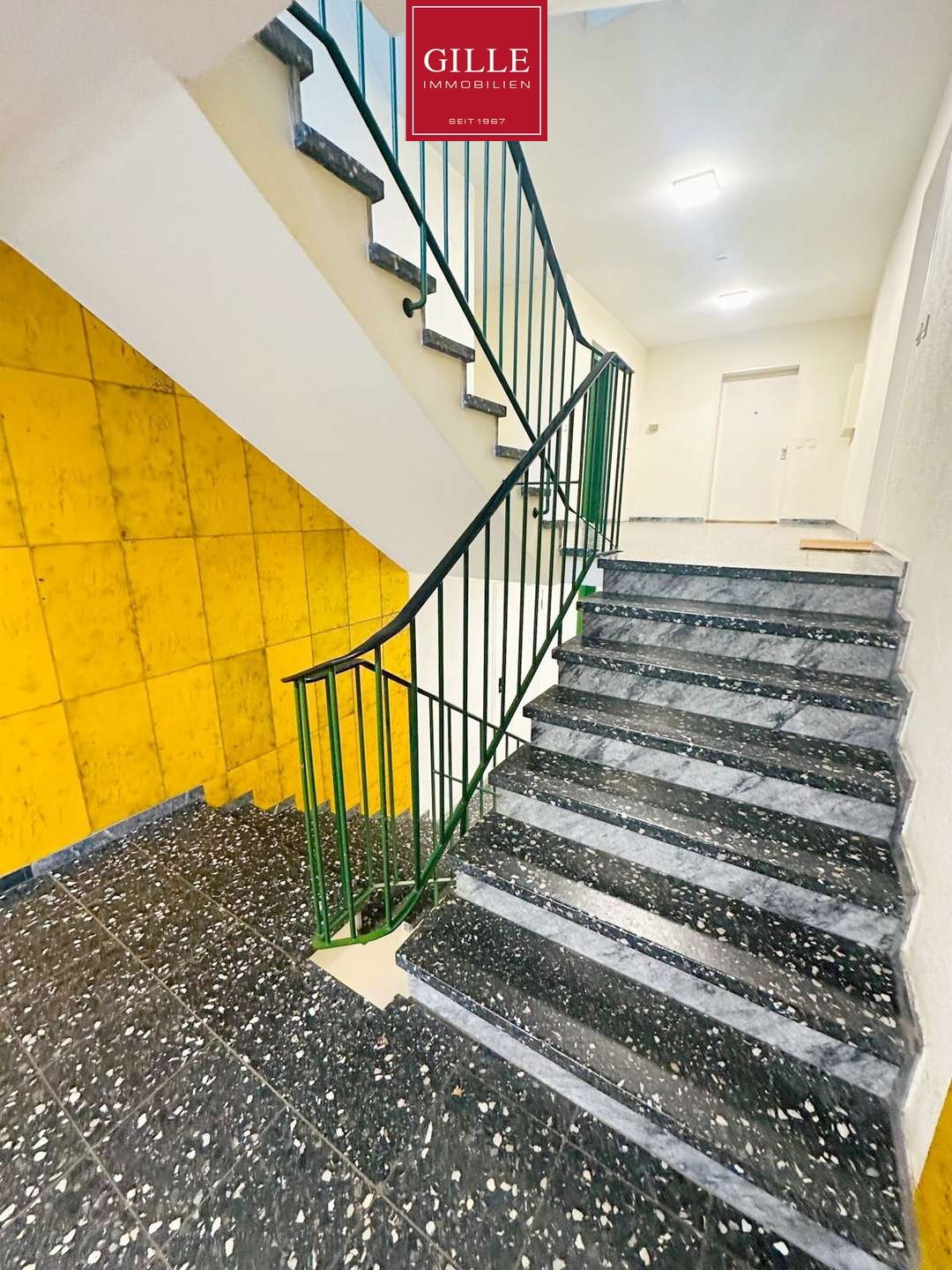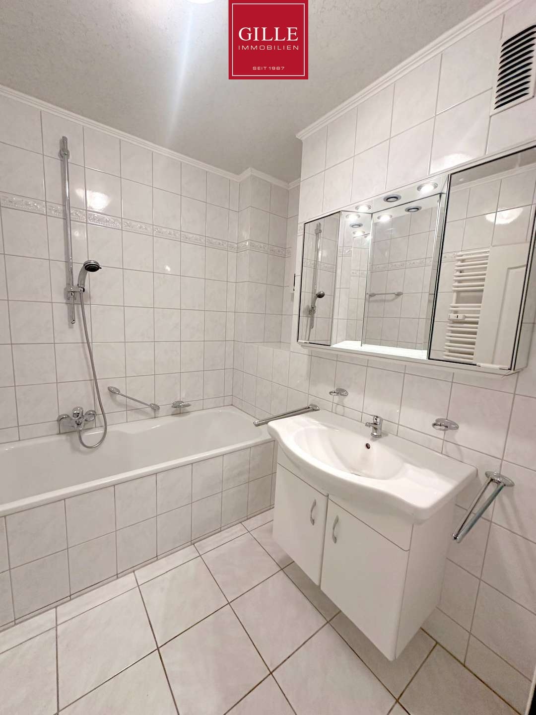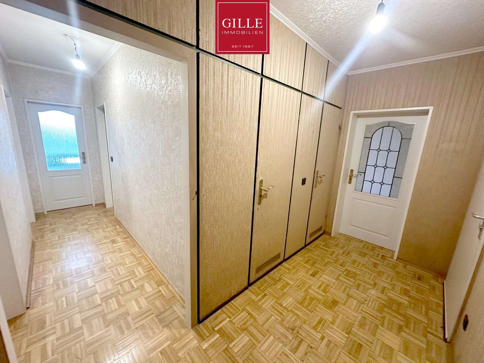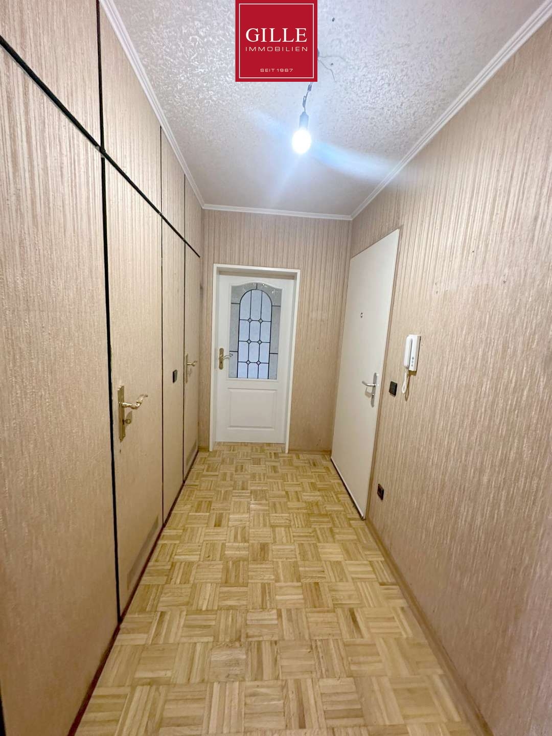 BeschreibungDie zur Vermietung anstehende gepflegte und gut aufgeteilte 3-Zimmerwohnung mit Aufzug und großer Loggia wurde ursprünglich in 1973 errichtet und besticht durch die helle Wohnatmosphäre und den tollen Weitblick. Sie befindet sich im 6. Obergeschoss und ist sowohl vom Hauseingang als auch von der Tiefgarage über einen Personenaufzug zu erreichen. Von der geräumigen und L-förmig gestalteten Eingangsdiele aus erreichen Sie alle weiteren Räume der Wohnung. Gegenüberliegend erreichen Sie einen Abstellraum und das separate WC mit WC und Waschbecken. Alle Sanitärgegenstände sind in weiß gehalten und die hellgelben Wand- und Bodenfliesen werden gerade modernisiert. Hereinkommend rechts erreichen Sie das sehr geräumige und helle Wohn-Esszimmer. Die komplette Fensterfront erstreckt sich über die ganze Breite des Raumes und enthält einen Zugang zur Loggia mit schönem Weitblick ins Grüne. Das Wohn-Esszimmer ist mit einem Stäbchenparkettboden, Stuckelementen an der Decke und einem direkten Zugang zur Wohnküche ausgestattet. Die helle und großzügige Wohnküche ist mit einer Einbauküche, einem hellen Fliesenboden, einem bodentiefen Fensterelement inkl. Balkontüre, elektrischen Außenrollläden und einem weiteren Zugang zur Diele versehen. Die abgebildete Einbauküche ist nicht im Mietpreis enthalten, kann aber ohne eine Abstandszahlung gerne genutzt werden. Das geräumige Schlafzimmer ist ebenfalls mit einem Stäbchenparkettboden, einer bodentiefen Fensterfront inkl. Ausgangstüre und elektrischen Außenrollläden versehen und bietet Ihnen ausreichend Platz für ein Bett und einen Kleiderschrank. Das gegenüberliegende Wannenbad ist mit einer Badewanne, einem Waschbecken, einem Waschmaschinenanschluss und einem Handtuchheizkörper ausgestattet. Alle Sanitärgegenstände in weiß gehalten und bilden mit den weißen Wand- und Bodenfliesen inkl. Bordüre ein stimmiges und gepflegtes Bild. Das Kinder- oder Arbeitszimmer ist mit einem Stäbchenparkett und einem großen Fenster mit tollem Weitblick ausgestattet. Der Dielenbereich und alle Wohn-/Schlafräume verfügen über einen Stäbchenparkettboden. Hiervon ausgenommen ist die Wohnküche, diese ist mit einem hellen Fliesenboden versehen. Die Wohnung verfügt über elektrischen Außenrollläden, ausgenommen hiervon sind das Wohnzimmer sowie das Kinder- oder Arbeitszimmer. Zur Wohnung gehört ein eigener Kellerraum, ein allgemein genutzter Trockenraum sowie eine Waschküche mit Gemeinschaftswaschmaschinen und Trockner. Die Treppenhausreinigung, die Pflege der gesamten Außenanlage sowie der Winterdienst werden übernommen und sind in den Nebenkosten enthalten.
